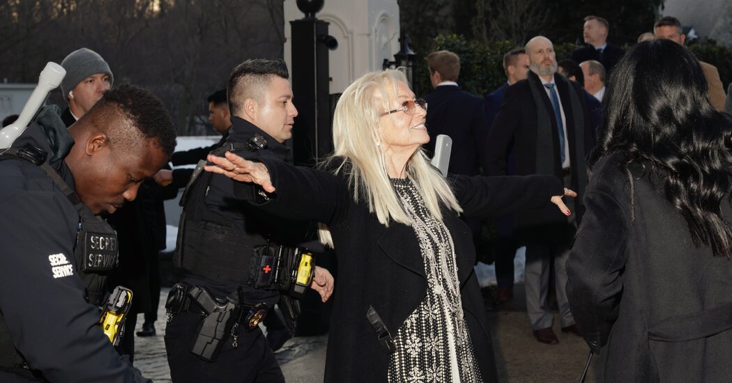 Mr. Thiel prides himself on his elaborate events, and his inauguration occasion, held in his seven-bedroom dwelling, included a employed juggler who fairly than juggling, as a substitute posed trivia inquiries to company about U.S. presidents. Snack truffles and different appetizers have been handed round, and bigger bites have been served at stations. (The Mar-a-Lago station had shrimp, steak and salad with Thousand Island dressing; there was additionally a meals supply from McDonald’s.) Reward baggage have been filed with small bottles of Moët champagne. There have been, after all, pink MAGA hats.
