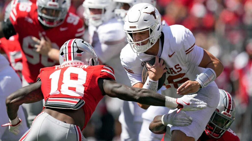 To chop Manning slack, he confronted the defending nationwide champions and a stacked protection. The Buckeyes function studs, akin to security Caleb Downs and linebacker Sonny Types, who every had 5 tackles in opposition to Texas.