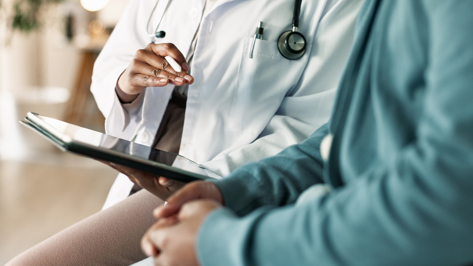 Inventory picture of a health care provider talking with a affected person.