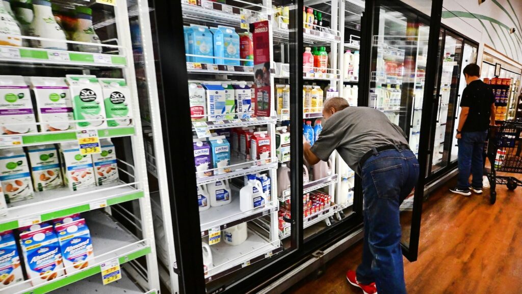 Individuals store for dairy merchandise at a grocery store in Monterey Park, California on September 9, 2025.