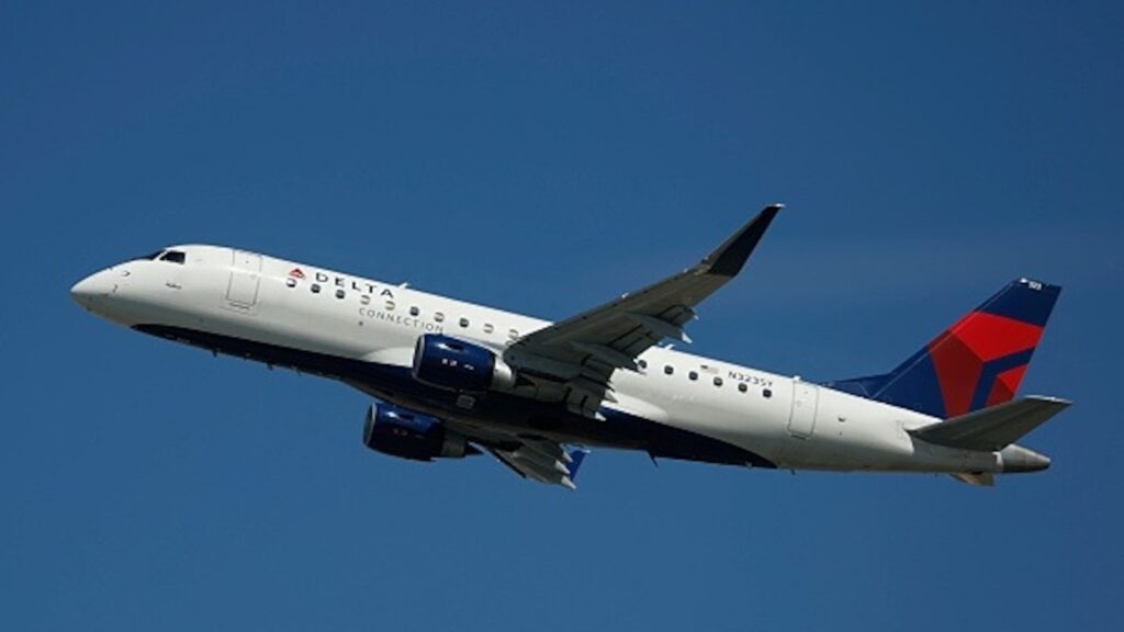 The pilot of a Delta Connection flight Embraer E175LR plane, just like the one pictured right here, was pressured to make an “aggressive” maneuver, July 19, 2025, to keep away from a mid-air collision with an Air Drive B-22 bomber. (Getty)