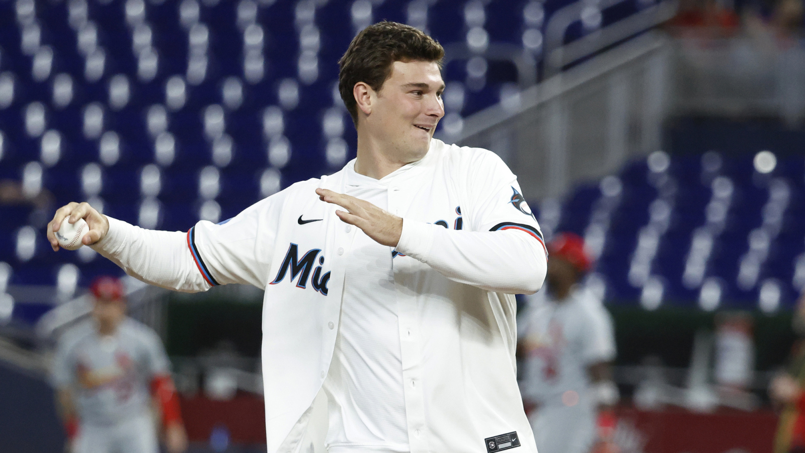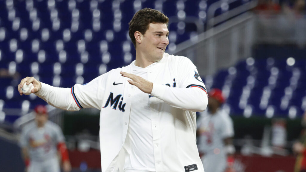 Indiana quarterback Fernando Mendoza’s ceremonial first pitch at Tuesday’s Miami Marlins recreation left so much to be desired.