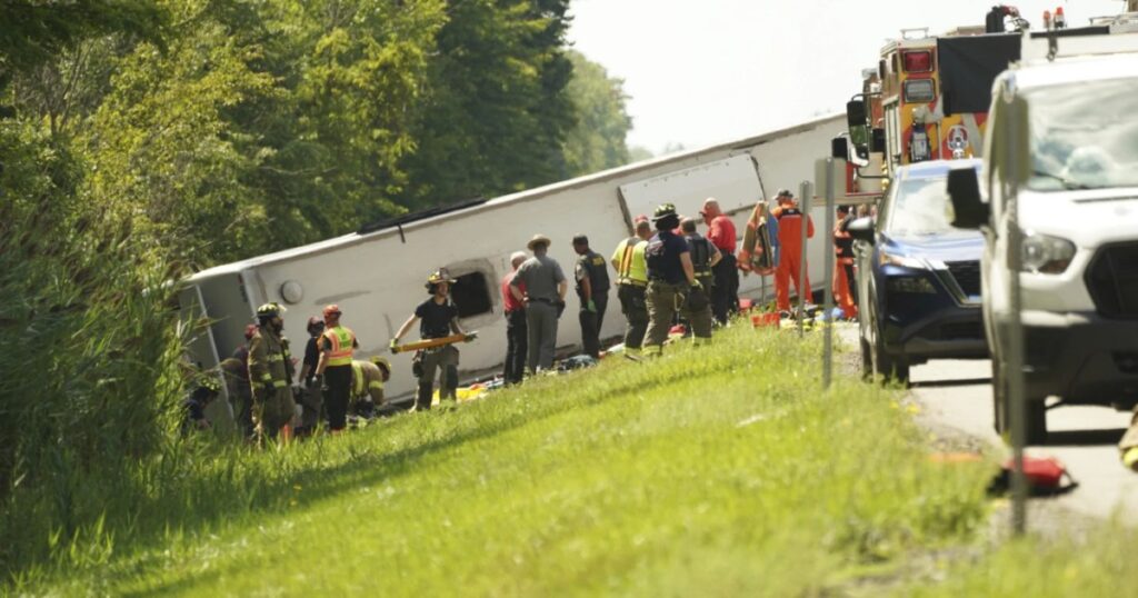 5 individuals have been killed and lots of have been injured when a tour bus returning to New York Metropolis from Niagara Falls with 54 individuals on board crashed and rolled on its facet on an interstate freeway, authorities stated.