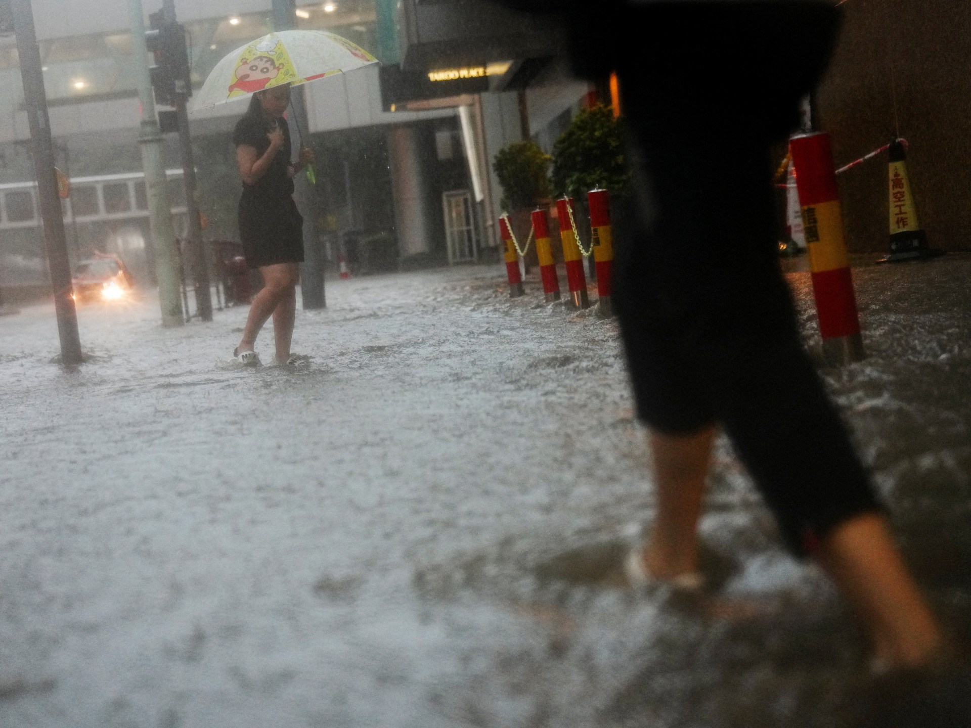 Hong Kong has been hit with record-breaking rains which have seen colleges and courts shuttered, hospitals disrupted, and roads badly flooded.