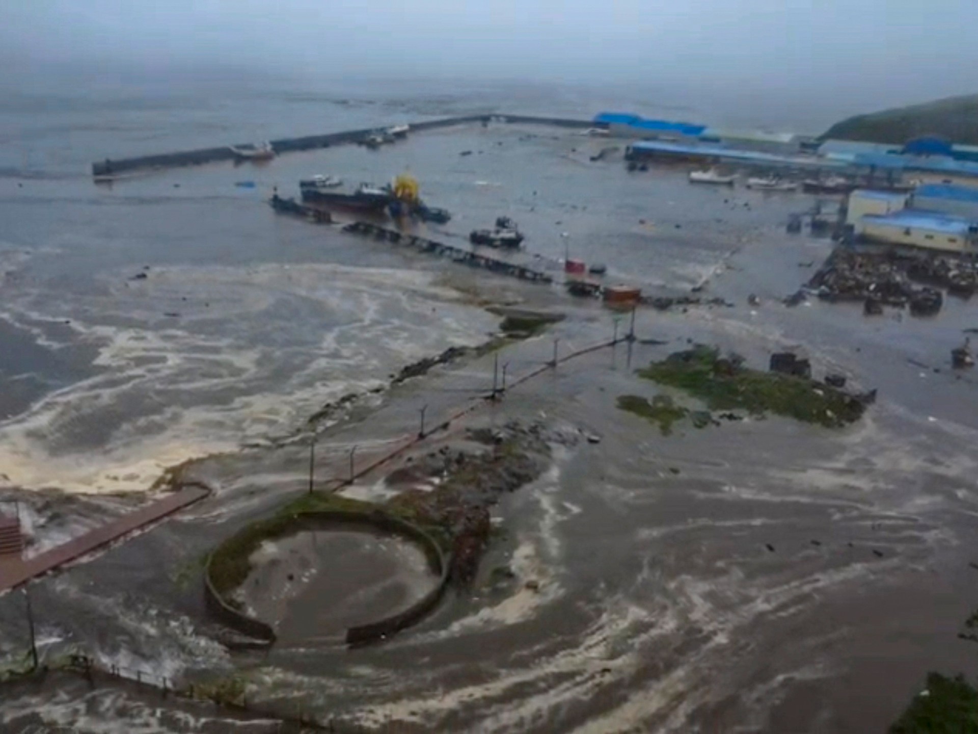 A tsunami warning was issued for the jap shore of the peninsula, jutting far out into the Bering Sea and Pacific Ocean.