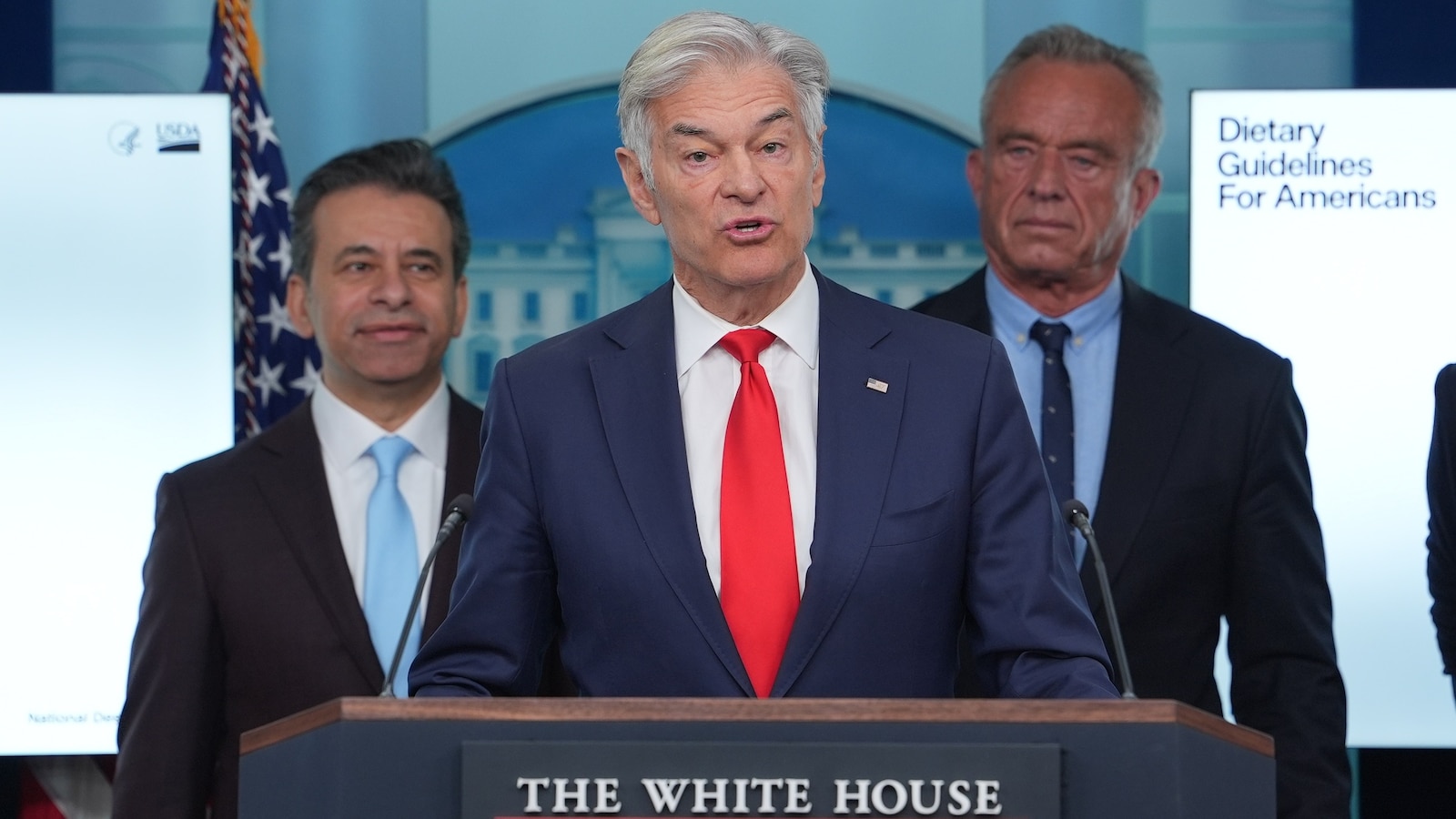 The brand new pointers — which additionally urge People to eat complete meals, incorporate wholesome fat, prioritize protein-rich meals and devour full-fat dairy with no added sugars — have been introduced Wednesday by Trump administration officers together with Well being and Human Companies Secretary Robert F. Kennedy Jr. and U.S. Division of Agriculture Secretary Brooke Rollins with help from Dr. Marty Makary, who runs the Meals and Drug Administration, and Dr. Mehmet Oz, the top of Facilities for Medicare & Medicaid Companies.