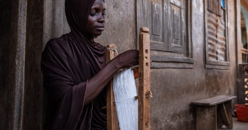 Naked-chested with tattooed biceps glistening, Waliu Fransisco works at his picket loom, the rhythmic click-clack filling the air as he weaves a cream-and-blue material. Ten years in the past, Fransisco deserted his profession as a Lagos nightclub singer to grasp aso-oke weaving. Although he initially discovered the bodily calls for difficult, he has no regrets about his determination.