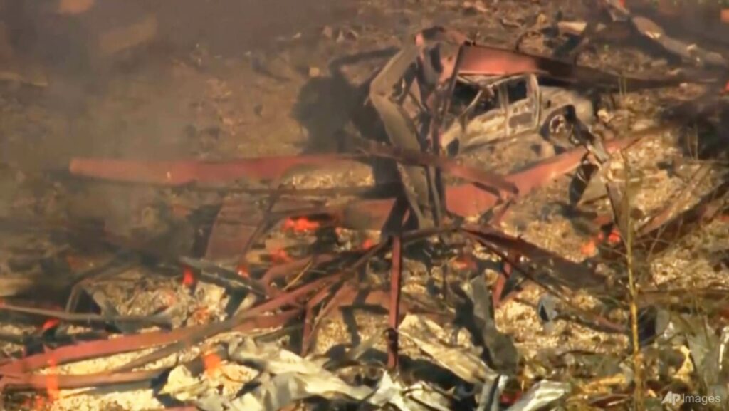 Aerial footage confirmed the corporate’s hilltop location smoldering and smoky on Friday, with only a mass of twisted metallic, burned-out shells of automobiles, and an array of particles left behind.