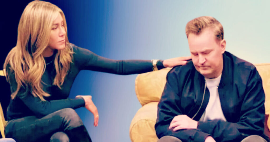 Co-star Jennifer Anniston consoles a depressed Matthew Perry throughout a ‘Mates’ reunion occasion.
