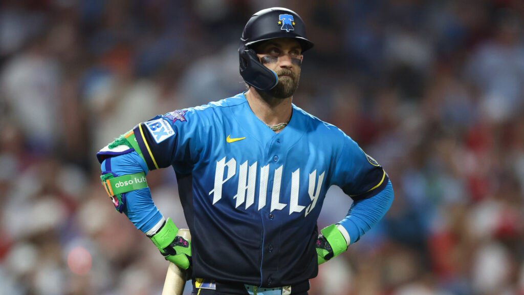 Philadelphia Phillies first baseman Bryce Harper will miss “Topper.”