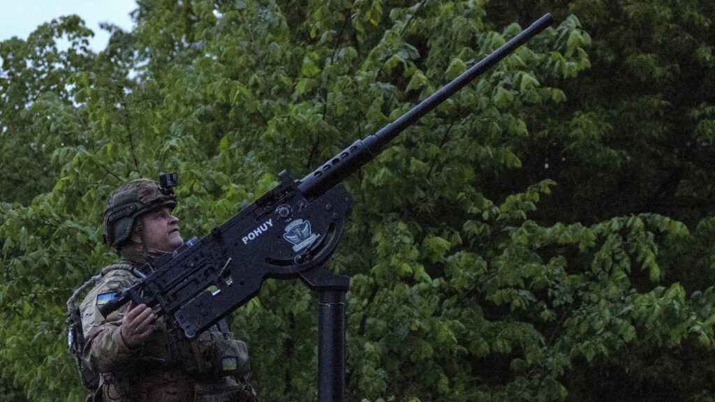 A member of a cellular air defence volunteer unit stands subsequent to a machine gun throughout essentially the most huge Russian drone strike, amid Russia’s assault on Ukraine, in Kyiv area, Ukraine Could 18, 2025.