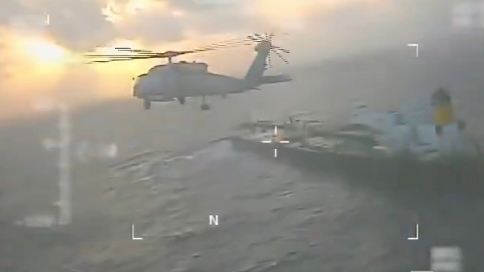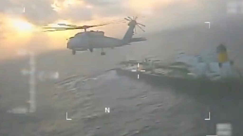 In a display seize from a video launched by Secretary Kristi Noem, the US Coast Guard apprehends an oil tanker that was final docked in Venezuela, on Dec. 20, 2025.